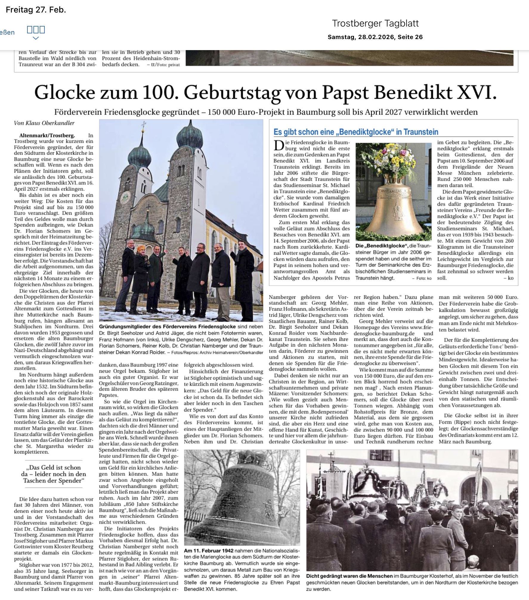 Die Vollendung des Baumburger Geläutes — Helfen Sie uns, nach über 80 Jahren die historische Lücke im Südturm zu schließen.